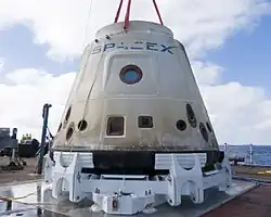 - ↑ «NASA Celebrates Dragon's Return». NASA. Consultado em 1 de março de 2017. Cópia arquivada em 5 de março de 2016