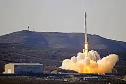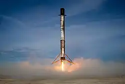 A SpaceX desenvolveu três veículos de lançamento. O Falcon 1 foi o primeiro veículo de lançamento desenvolvido e foi aposentado em 2009. O Falcon 9 de médio porte e o Falcon Heavy de grande porte estão ambos operacionais. O Falcon 1 era um pequeno foguete capaz de colocar algumas centenas de quilos na órbita terrestre baixa. Foi lançado cinco vezes entre 2006 e 2009, das quais 2 com sucesso.[104] Funcionou como um primeiro teste para o desenvolvimento de conceitos e componentes para o Falcon 9 maior.[104] O Falcon 1 foi o primeiro foguete de combustível líquido com financiamento privado a alcançar a órbita.[85]