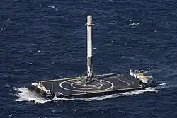 A SpaceX alcançou pela primeira vez um pouso e recuperação bem-sucedidos de um primeiro estágio em dezembro de 2015 com o Voo 20 do Falcon 9.[52] Em abril de 2016, a empresa realizou o primeiro pouso bem-sucedido na balsa-drone (ASDS), Of Course I Still Love You no Oceano Atlântico.[53] Em outubro de 2016, após os pousos bem-sucedidos, a SpaceX indicou que estava oferecendo aos seus clientes um desconto de 10% no preço se eles optassem por lançamento com sua carga útil em um primeiro estágio do Falcon 9 reutilizado.[54]