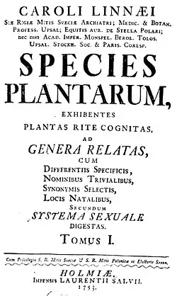 A obra Species Plantarum foi publicado pela primeira vez em 1753 como um trabalho de dois volumes, escrito por Lineu. É um livro importante por se tratar de um ponto de arranque para a nomenclatura botânica tal como existe hoje em dia.[1] Algumas das características da obra são: