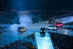 Em sua reunião única na cerimônia de encerramento dos Jogos Olímpicos de Verão de 2012, as Spice Girls se apresentaram em versões atualizadas de alta moda de seus trajes de assinatura,[211] após entrar no Estádio Olímpico em cinco táxis pretos iluminados com LEDs, cada um decorado com seus emblemas individuais da marca registrada.