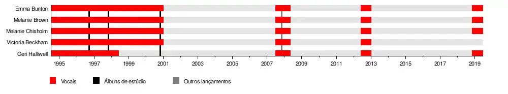 | Ex-integrantes | Emma Bunton Geri Halliwell Melanie Brown Melanie Chisholm Victoria Beckham |