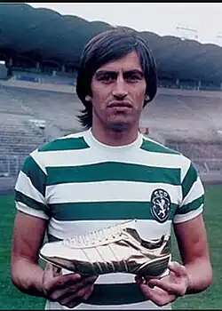 O jogador Hector Yazalde, também conhecido como "Chirola", foi transferido para o Sporting do clube argentino Independiente em 1970, e ainda hoje detém o recorde de golos marcados numa época, no Campeonato Português, tendo apontado 46 tentos em 30 jornadas. Yazalde estabeleceu também um novo recorde europeu de golos a 19 de Maio de 1974, sagrando-se naturalmente Bota de Ouro europeu, o primeiro argentino a consegui-lo, e batendo a marca do húngaro Skoblar.[25] O recorde português não foi ultrapassado até aos de hoje, sendo a quarta melhor marca europeia de todos os tempos.[26][27] Como prémio recebeu um automóvel Toyota, que vendeu, dividindo o valor pelos companheiros de equipa.[28][29]
