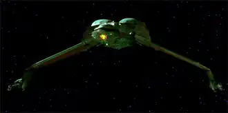 Os desenhistas de produção Nilo Rodis e Dave Carson projetaram a Ave de Rapina klingon, enquanto George construiu seu modelo.[31] Nimoy queria que a nave lembrasse um pássaro atacando uma presa, possuindo asas móveis que mudavam dependendo se ela estava uma postura de viagem normal ou de ataque. George inspirou-se em desenhos de fisiculturistas e jogadores de futebol americano, incorporando à Ave de Rapina equivalentes de braços ameaçadores curvados para baixo e ombros musculosos, junto com aquilo que pareciam protetores de ombros e de queixo no pescoço estendido da nave.[24] Apesar do roubo da nave romulana ter sido cortado do roteiro, o desenho final da Ave de Rapina ainda incorporava elementos de suas origens romulanas, com Ralston comentando que "Ela possui um pouco do formato básico de pássaro, mas é mais sinistra". Uma ilustração gráfica de uma ave foi integrada ao casco inferior.[31]