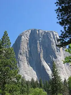 As cenas de Yosemite foram filmadas em locação.[3] Planos abertos de Kirk escalando a montanha foram filmadas com dublês, enquanto os planos fechados de Shatner tinham um modelo de fibra de vidro posicionado em frente da câmera, com montanhas reais visíveis ao fundo.[55] O ator e diretor tinha passado duas semanas treinando em uma réplica de madeira na Paramount com dois treinadores.[56] O diretor de fotografia Andrew Laszlo procurou por um pico alto em que a produção criou um pedaço da montanha com uma rede de segurança. O plano visto de cima deu a impressão que Kirk estava escalando em uma altura enorme, com elementos de fundo artificiais como piscinas tendo sido camuflados. Spock assiste a escalada de Kirk na mesma cena, salvando-o com botas antigravidade depois do capitão escorregar e cair. A maioria dos planos enquadravam Nimoy da cintura para cima; nestas cenas o ator estava suspenso por uma grua a fim de lhe dar um efeito "flutuante" apropriado. Imagens em tela azul de Shatner caindo foram depois filmadas na Paramount, enquanto o dublê Ken Bates estabeleceu um recorde de maior queda norte-americana ao cair do El Capitan com a ajuda de cabos de segurança para os planos abertos.[55] A produção percebeu enquanto revisavam copiões dos dois primeiros dias de filmagens que um pinheiro durante um diálogo entre Kirk e Spock na escalada da montanha tinha aparecido e acabado com a sensação de altura, enquanto um plano de Shatner agarrando-se ao El Capitan parecia turvo pelas nuvens estarem obscurecendo o Sol e arruinando a profundidade de campo. Ambas as cenas precisaram ser depois refilmadas.[57]