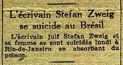 - ↑ «Em 23 de fevereiro de 1942, Stefan Zweig e esposa cometiam suicídio em Petrópolis». História, Ciências, Saúde - Manguinhos. Consultado em 22 de fevereiro de 2022