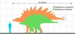- ↑ Não se deve confundir o gênero estegossauro (Stegosaurus) com a ordem de estegossauros (Stegosauria).