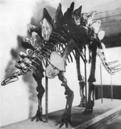 - 1 2 3 Gilmore, C. W. (1919). "A newly mounted skeleton of the armored dinosaur, Stegosaurus stenops, in the United States National Museum" (Manuscrito submetido). Proceedings of the United States National Museum. 54 (2241): pp. 383–390. doi:10.5479/si.00963801.54-2241.383.
