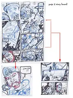 Uma outra técnica similar é chamada de roteiro rascunhado ou decupagem, [22] quando o artista transforma o roteiro em uma página de histórias em quadrinhos esboçada.[23][24]