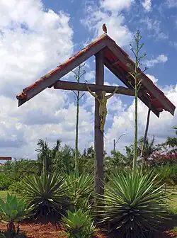 Coruja pousada no ponto mais alto de um monumento de cruzeiro
