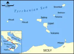 - Strombolicchio - pequena agulha vulcânica a 2 km a nordeste de Stromboli