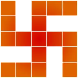 - Suástica preta, com giro de 45º, sobre um quadrado branco (exemplo, a Juventude Hitlerista);