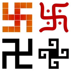 A suástica é considerada extremamente santa e auspiciosa por todos os hindus, e seu uso decorativo está presente em todos os tipos de artigos relativos à sua cultura.
