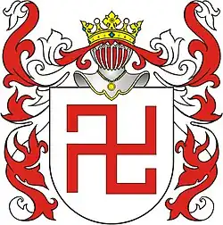 A suástica estava também presente na mitologia eslava pré-cristã. Era dedicada ao deus do Sol, chamado Svarog, e tinha o nome de Kolovrat (em polonês: kolowrót). Na República Polonesa o símbolo da suástica era popular entre os nobres. As crônicas registram que o príncipe Olegue, varangiano (um dos povos escandinavos), que no século IX junto aos seus guerreiros viquingues russos conquistaram Constantinopla, havia inscrito uma suástica vermelha nos portões daquela cidade. Várias das casas nobres da Polônia, como por exemplo Boreyko, Borzym, e Radziechowski da Rutênia ostentavam suásticas em seus brasões. As famílias alcançaram a nobreza entre os séculos XIV e XV, e a cruz suástica pode ser vista em muitos livros de heráldica então produzidos.