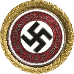 O símbolo era usado na bandeira, bem como em distintivos e braçadeiras do partido - embora já fosse usado, não oficialmente, pelo NSDAP e seu antecessor: o Partido dos Trabalhadores Alemães (Deutsche Arbeiterpartei, DAP).