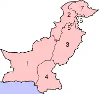 O território paquistanês reconhecido internacionalmente subdivide-se em quatro províncias e dois territórios. Ademais, a porção da Caxemira que é governada pelo Paquistão divide-se em duas unidades administrativas separadas.