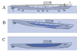 14. Albergaria, Marcos Roberto Superbi (2020). «Aspectos básicos do projeto de cascos para submarinos». O Periscópio (71): 78–83. ISSN 1806-5643. Consultado em 21 de fevereiro de 2023