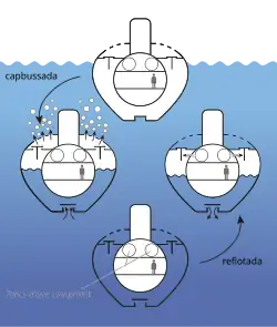 A ideia de funcionamento de um submarino se deu com o sino de mergulho e com o Princípio de Arquimedes, que determina que um corpo mergulhado num líquido sofre uma força de impulsão igual ao peso do volume de líquido deslocado.[2][3]
