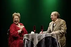 ![]() Franco em cena da peça Elza & Fred: O Amor não Tem Idade, em 2014. | |