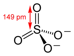 Sulfato segundo a IUPAC é o íon SO42-, consistindo de um átomo central de enxofre ligado por ligações covalentes a quatro átomos de oxigênio. O ânion sulfato apresenta estado de oxidação -2.