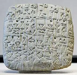 Os Monumentos Azuis combinam caracteres proto-cuneiformes e ilustrações dos primeiros sumérios, período Jemdet Nasr, 3100–2700 a.C. Museu Britânico