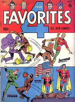 - ↑ Benton, Mike (1992). Superhero Comics of the Golden Age: The Illustrated History. Dallas: Taylor Publishing Company. p. 153. ISBN 0-87833-808-X