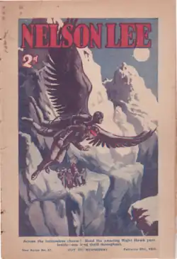 Também em 1930, no Reino Unido, a revista literária Nelson Lee Library lança Night Hawk de John James Brearley Garbutt, o herói é Thurston Kyle, um detetive e inventor que cria asas que o permitem voar.[32]