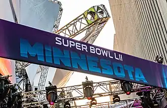 - ↑ Olson, Rochelle (10 de outubro de 2017). «NFL Super Bowl executives swarm Twin Cities to work out most 'complex' event in league history». Minneapolis Star Tribune. Consultado em 10 de outubro de 2017. Cópia arquivada em 18 de outubro de 2017
