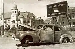 Carro do Brigadeiro-General britânico Mallaby no local onde ele foi assassinado por nacionalista indonésios.