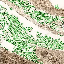 . PMID 26698106. doi:10.7554/eLife.11785 - ↑ Gonzalez, J. P.; Pourrut, X.; Leroy, E. (2007). «Ebolavirus and Other Filoviruses». In: Childs, J. E.; Mackenzie, J. S.; Richt, J. A. Wildlife and Emerging Zoonotic Diseases: The Biology, Circumstances and Consequences of Cross-Species Transmission. Col: Current Topics in Microbiology and Immunology. 315. [S.l.: s.n.] pp. 363–387. ISBN 978-3-540-70961-9. PMID 17848072. doi:10.1007/978-3-540-70962-6_15
