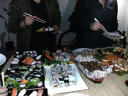 Sushi (すし, 寿司, 鮨; pronunciado [sɯꜜɕi] ou [sɯɕiꜜ]) é um prato da culinária japonesa que possui origem numa antiga técnica de conservação da carne de peixe em arroz avinagrado. O sushi, na forma em que é conhecido atualmente, tem cerca de 200 anos; inicialmente, era vendido em barracas, como comida de rua, numa espécie de fast food.