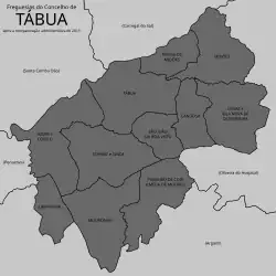 A vila é sede do município de Tábua que tem 199,79 km² de área[2] e 12 071 habitantes (2011),[3][4] subdividido em 11 freguesias.[5] O município é limitado a norte pelo município de Carregal do Sal, a este por Oliveira do Hospital, a sul por Arganil, a oeste por Penacova e a noroeste por Santa Comba Dão.
