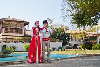 ![]() Casal de tártaros da Crimeia em trajes típicos (2012) | |