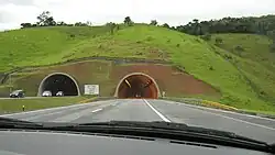 Brasil — Túnel 3/4 (Rodovia dos Tamoios), com 5,55 quilômetros, é o mais longo túnel rodoviário do Brasil[2]