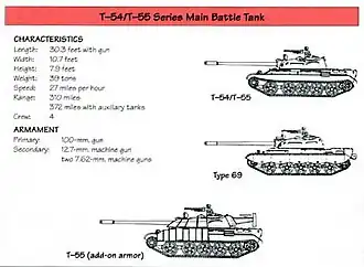 - ↑ Halberstadt, Hans Inside the Great Tanks The Crowood Press Ltd. Wiltshire, England 1997 94-96 ISBN 1-86126-270-1 "The T-54/T-55 series is the hands down, all time most popular tank in history."