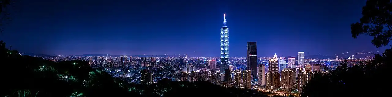 - ↑ «Taipei City Government: Home – I. Geographic Overview». Taipei City Government. 23 de outubro de 2006. Consultado em 4 de agosto de 2009. Cópia arquivada em 9 de dezembro de 2013