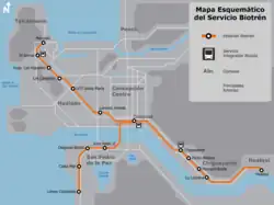Talcahuano é inserida no transporte urbano integrado Bio-vias (Biovías, em castelhano), que entrou em funcionamento em 2005. O sistema ferroviário Biotrem consiste em duas linhas, as que ligam as comunas de: Hualpén, Concepción, Chiguayante, Hualqui, San Pedro de la Paz e Coronel. As Bio-estações localizadas em Talcahuano são como se segue: