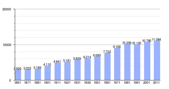 | Variação demográfica do município entre 1861 e 2011[3] |