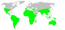 O termo "tarântula" em português, assim como "caranguejeira", refere-se a toda a família Theraphosidae, que possui distribuição mundial. Embora popularmente o termo seja mais associado às espécies americanas (especialmente da subfamília Theraphosinae), todas as espécies da família — sejam americanas, africanas, asiáticas ou da Oceania — são taxonomicamente consideradas tarântulas ou caranguejeiras.[7]