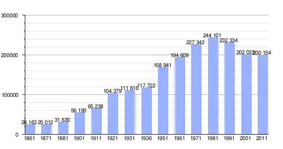 | Variação demográfica do município entre 1861 e 2011[5] |