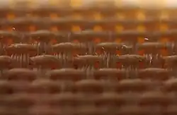 Após a trama ser inferida, o pente bate (impulsionado por excêntricos)