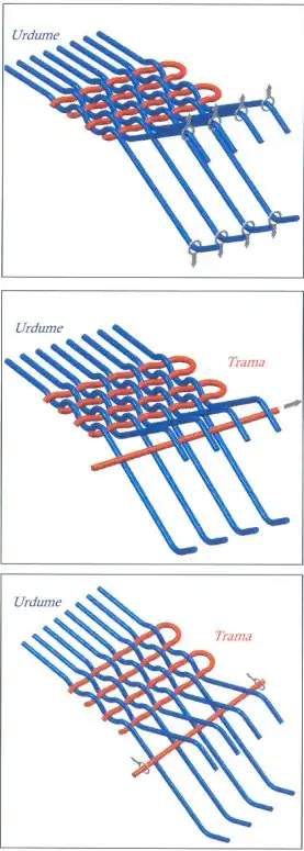 Todos os teares seguem a mesma ideia básica da tecelagem, como foi descrito: (1) Abertura da Cala, (2) Inserção da Trama e (3) Batida do pente.