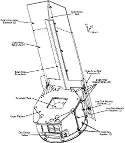 O telescópio está fixado no seu topo do emissor de vapor gelado do criostato. O telescópio e o invólucro do criostato são lançados à temperatura ambiente e esfriados 35 graus kelvins quando em órbita.