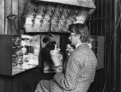 Em 7 de setembro de 1927, o tubo da câmera dissecadora de imagens do inventor estadunidense Philo Farnsworth transmitiu sua primeira imagem, uma linha reta simples, em seu laboratório na 202 Green Street, em São Francisco.[58][59] Em 3 de setembro de 1928, Farnsworth desenvolveu o sistema o suficiente para realizar uma demonstração para a imprensa. Esta é amplamente considerada como a primeira demonstração de televisão eletrônica.[59] Em 1929, o sistema foi melhorado ainda mais com a eliminação de um motor-gerador, de modo que seu sistema de televisão passou a não ter peças mecânicas.[60] Naquele ano, Farnsworth transmitiu as primeiras imagens humanas ao vivo com seu sistema, incluindo uma imagem de três polegadas e meia de sua esposa Elma ("Pem") com os olhos fechados (possivelmente devido à iluminação intensa necessária).[61]