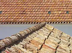 Dois tipos de telha portuguesa: a tradicional (primeiro plano) e a moderna. Porto Covo, Portugal.