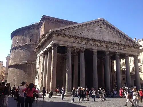- Panteão ou "Templo de Todos os Deuses", único entre os templos romanos, mas depois muito copiado. Muito provavelmente o mais impressionante e completo interior de um templo romano a sobreviver.