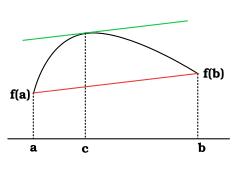 Geometricamente, isto significa que a tangente ao gráfico de f no ponto de abcissa c é paralela à secante que passa pelos pontos de abcissas a e b.