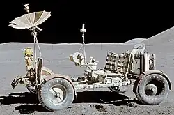 • Rovers lunares para quatro missões foram construídas. Três deles foram levados à Lua nas Apollo 15, 16 e 17, e deixados lá. Após a Apollo 18 ter sido cancelada (veja Missões Apollo canceladas), o outro rover lunar foi usado para fornecer partes sobressalentes para as missões Apollo 15 a 17. Os únicos rovers lunares em exibição são veículos e testes, treino, e modelos.[58] Os "Jipes Lunares" foram construídos pela Boeing (the New Encyclopædia Britannica Micropedia, 2005, vol 2, p 319).[59] O manual de operações de 221 páginas do Lunar Rover contém alguns desenhos detalhados,[60] apesar de não conter os projetos detalhados.