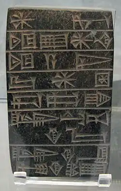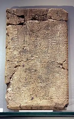 Grande tábua com o inventário de uma instituição: balanço anual de uma exploração agrícola; reinado de Amar-Sim; Museu do Louvre