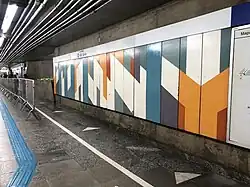 - "Sem título (Mural 2)", Odiléa Toscano, pintura sobre parede (1990), tinta acrílica (2,96 m X 4,85 m – 14,35 m²), instalada acima das escadas rolantes no acesso a plataforma 2.[35]